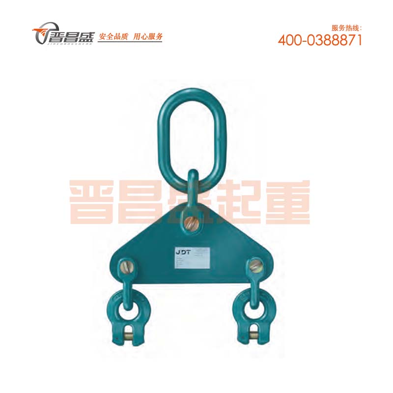 下面提到的額定載荷是對使用雙肢鏈有效的,必須是對稱的分布。雙肢鏈條一端安裝到吊板,另一端安裝吊鉤。吊裝器EAWI1對起重鉤從8到50噸的特殊主環(huán)也是有效的。